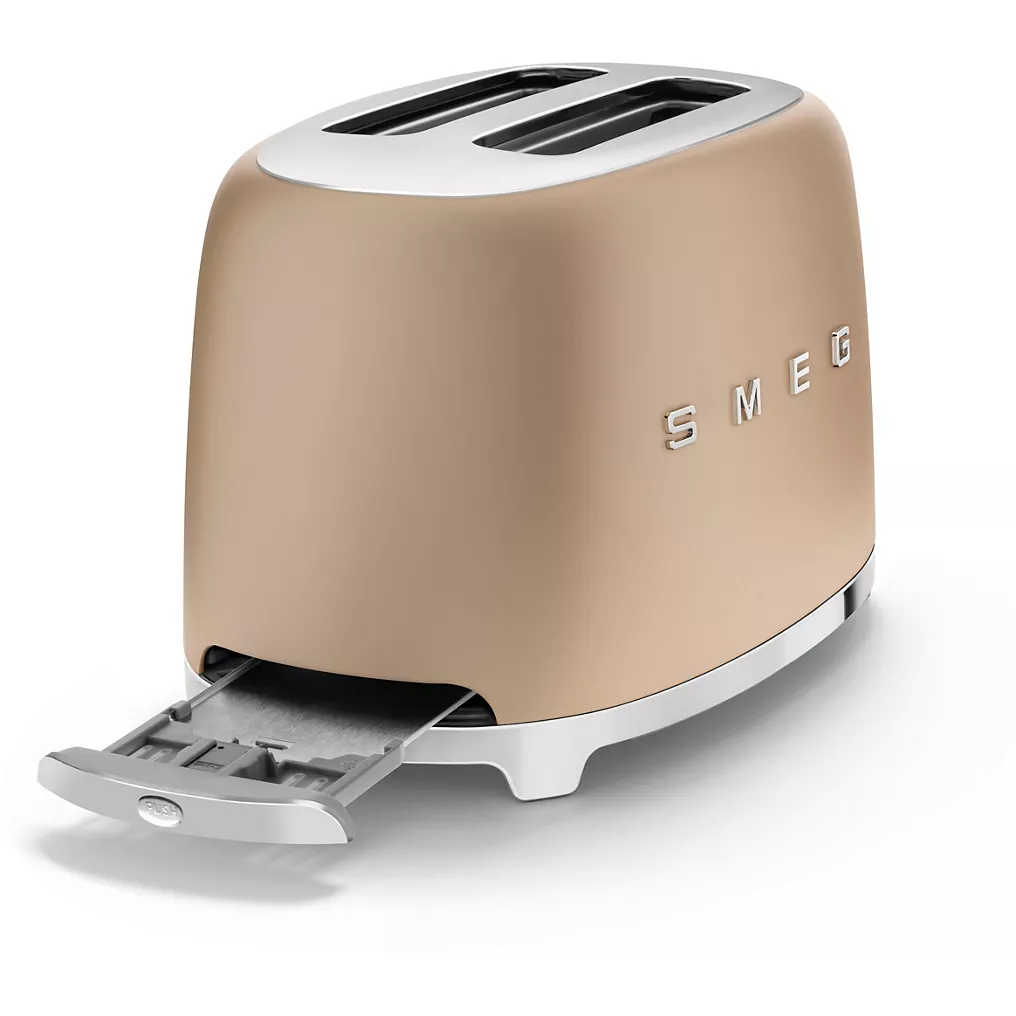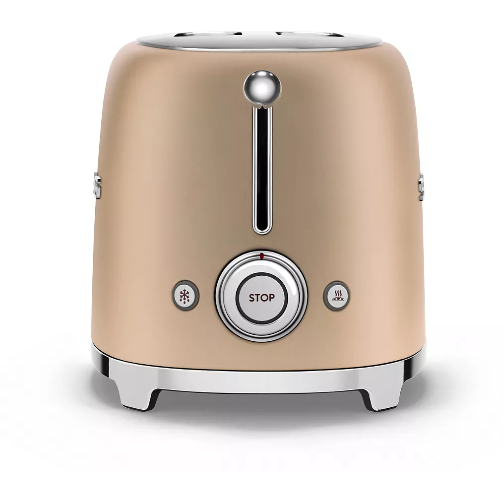 Découvrez le grille-pain SMEG TSF01CHMEU, un incontournable au design rétro iconique et à la finition or mat. Pensé pour un usage quotidien, il offre une puissance de 950 W et 6 niveaux de brunissage pour des résultats parfaitement maîtrisés, du doré léger au croustillant.
